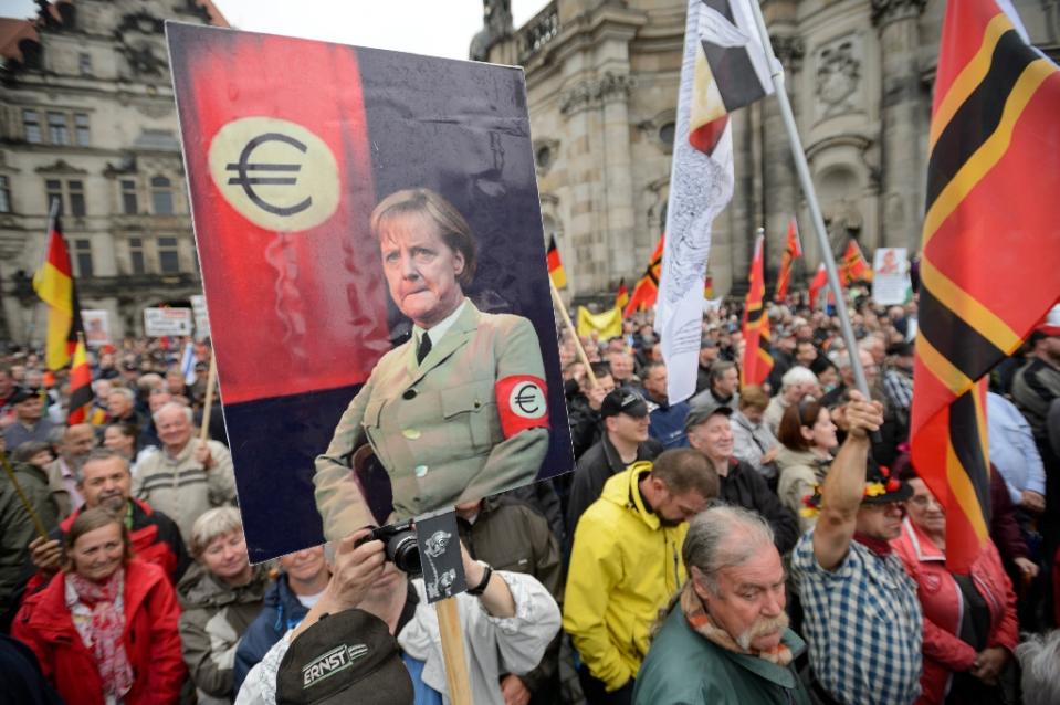 Monday’s rally in PEGIDA’s stronghold of Dresden, marked a contrast to efforts by Merkel who over the weekend made a crucial one-day trip to Turkey, where she hailed progress in helping Ankara deal with the migrant crisis and vowed to push forward its long-stalled EU membership bid.