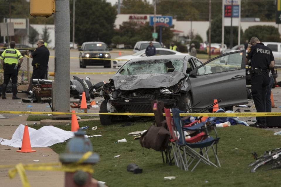 A speeding car crashed into a crowd watching a parade in Oklahoma, killing four people, including a two-year-old boy. The driver, a 25-year-old woman identified by police as Adacia Avery Chambers, was arrested for driving under the influence after the crash at an Oklahoma State University homecoming parade. Police in the town of Stillwater said a total of 44 people were also injured, AFP reports.