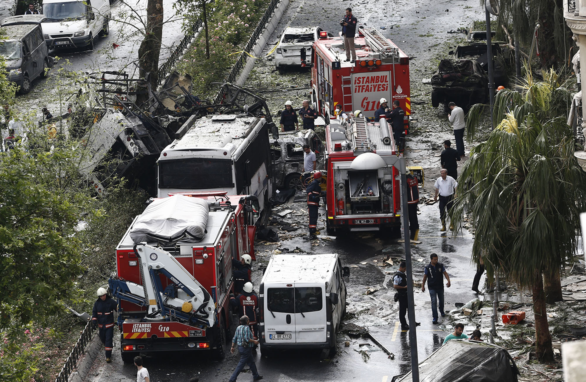 "Three of the 36 wounded were in critical condition," he said. The blast hit the Vezneciler district, between the headquarters of the local municipality and the campus of Istanbul University, not far from the city's historic heart. It shattered windows in shops and a mosque and scattered debris over nearby streets.