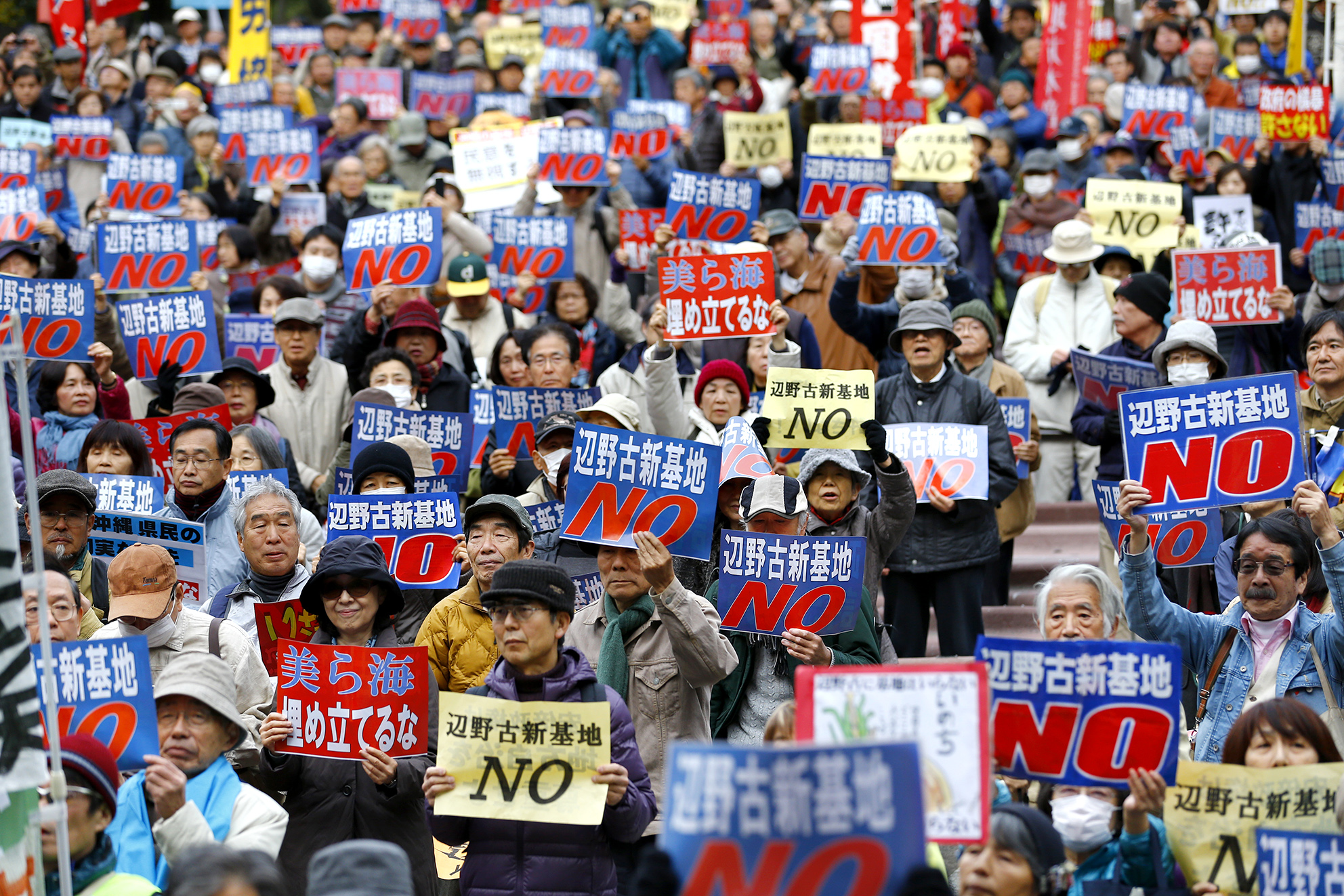 The protest marks a new low for the United States and Japanese Prime Minister Shinzo Abe in their relations with the island and threatens plans to have the US Marines Futenma air station moved to a less populous part of the island, Reuters reported.