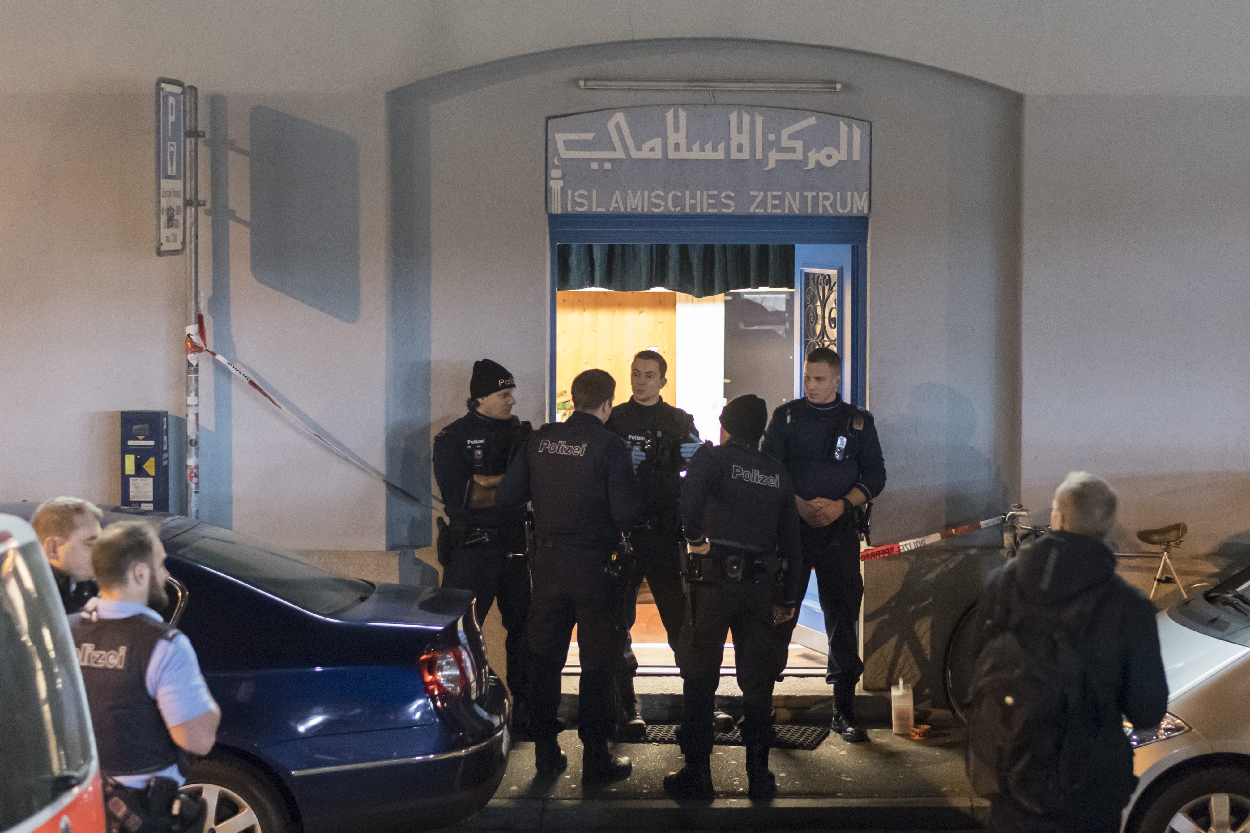 Swiss media said the three wounded people were found in the street where the prayer hall is located.