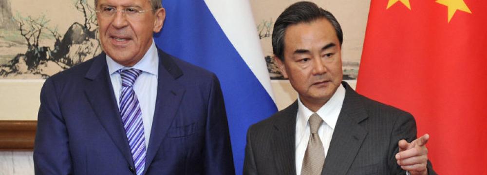 Wang and Lavrov agreed to strengthen cooperation with countries in the association of five major emerging economies known as BRICS that include Brazil, Russia, India, China and South Africa.