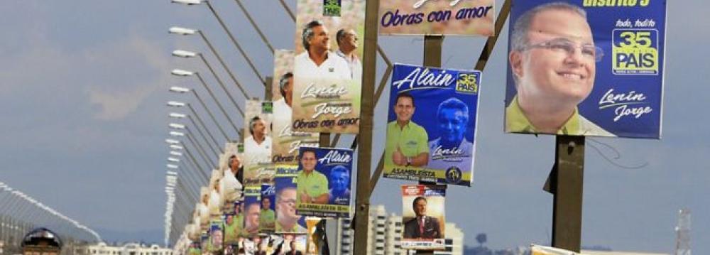 His former vice president, Lenin Moreno, is expected to lead Sunday's vote, but is facing a strong challenge from conservative Guillermo Lasso who has vowed to cut spending and taxes. Candidates need to win 40% of the vote to avoid a second round runoff.