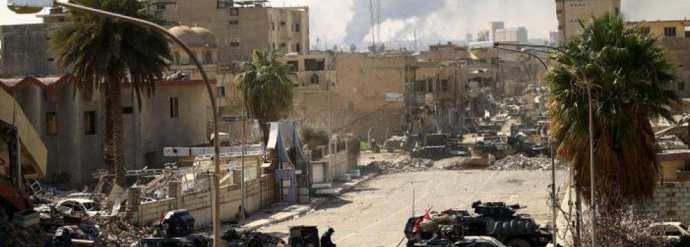 Iraqi government forces fighting to drive the self-styled Islamic State terrorists from western Mosul on Tuesday recaptured the main government building, the central bank branch and the museum where three years ago the militants had smashed statues and artifacts. The government buildings had been destroyed and were not used by IS, but their capture still represented a symbolic victory in the battle over the militants' last major stronghold in Iraq.