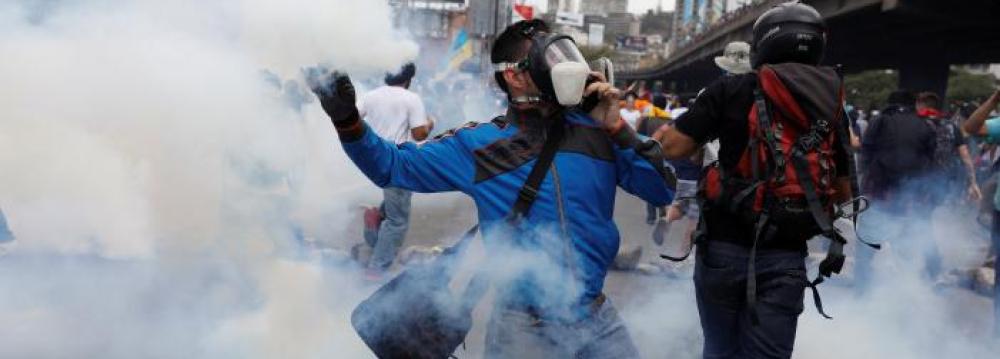 Security forces blocked the march, sparking clashes with dozens of masked youths in a scene repeated over and over again in the past 15 years in volatile Venezuela.