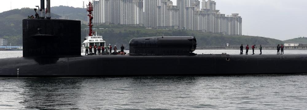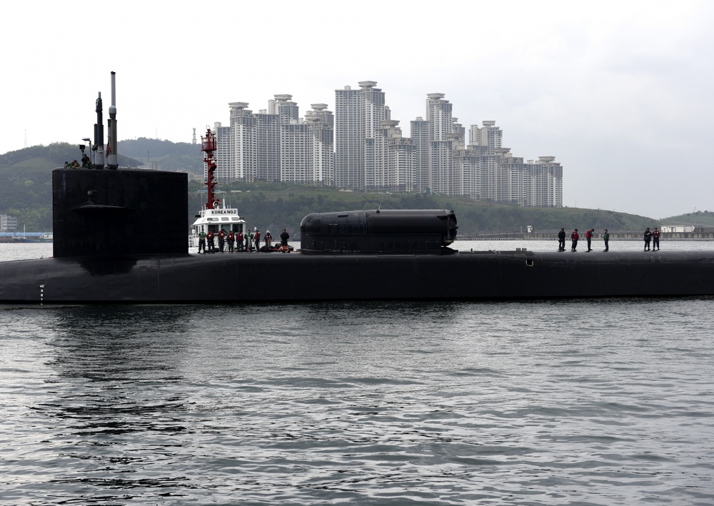 The port call by the USS Michigan came as a US aircraft carrier strike group steamed toward Korean waters and as the top envoys for North Korea policy from South Korea, Japan and the United States met in Tokyo, Reuters reported.