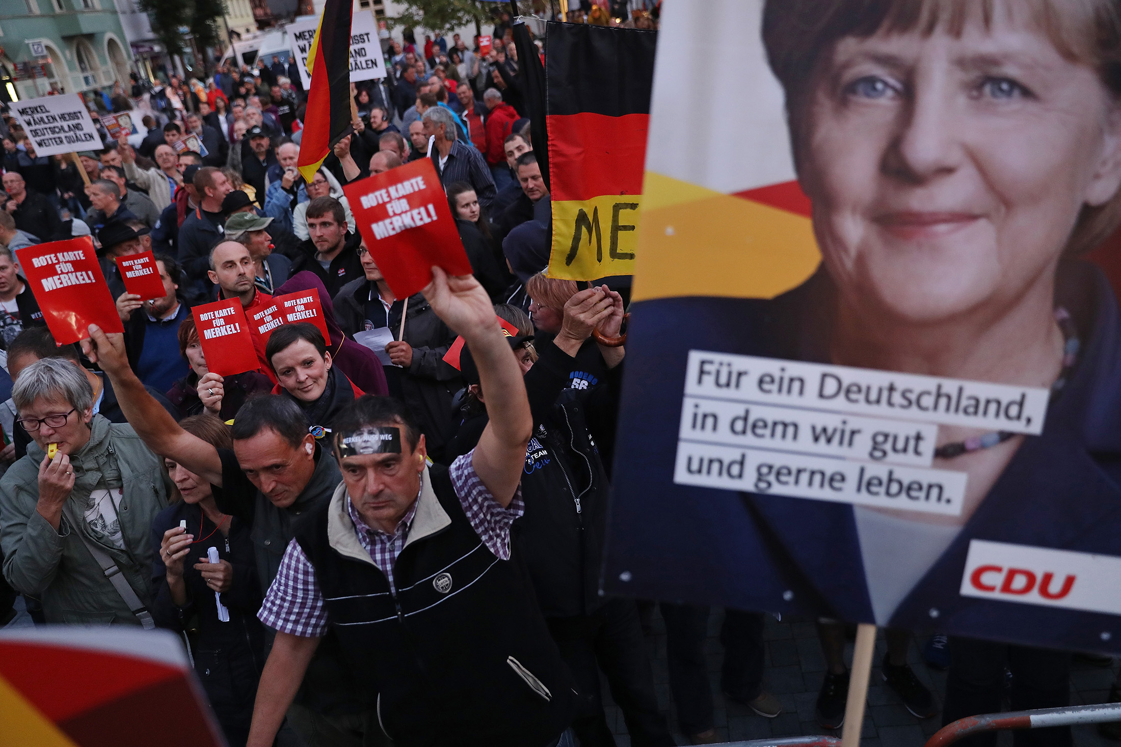 “A lot of them, usually from the AfD and the NPD, come simply with goal of making it hard for others to listen,” Merkel said at an event at her party’s campaign headquarters in Berlin on Saturday. “So I hope that the people who come to listen will also have their say, not just those who are rowdies and show up to whistle and shout.”