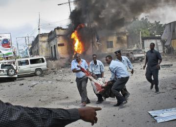 InternationalAt least 10, including a government soldier and the suspected suicide bomber, were killed in a car explosion at a security checkpoint on the outskirts of the Somali capital, Mogadishu, on Saturday…