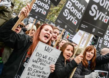 InternationalSome 5,000 people protested in London on Saturday against potential British participation in Syria airstrikes, as political momentum has mounted to broaden the fight against Islamic State…