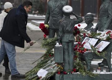Lt Col Oleg Peshkov’s coffin was flown to the capital…
